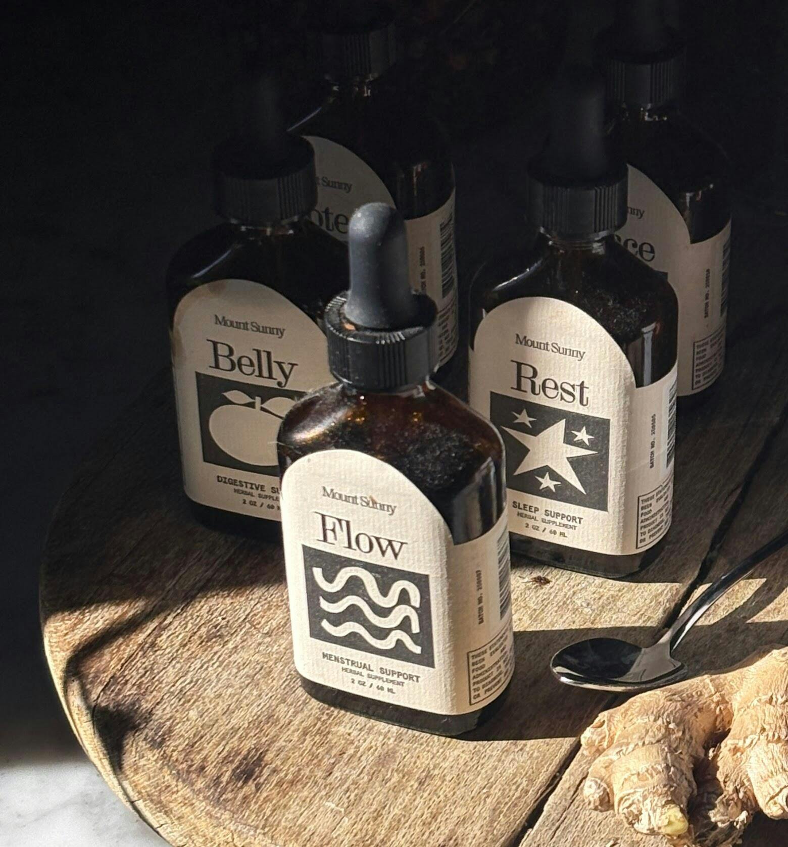 Our tinctures are extracted using a balanced ratio of ethanol, honey, and purified water — capturing both the strength and subtle essence of each herb. Every batch is hand-poured and blessed with intention, keeping Mount Sunny’s signature warmth in every bottle.