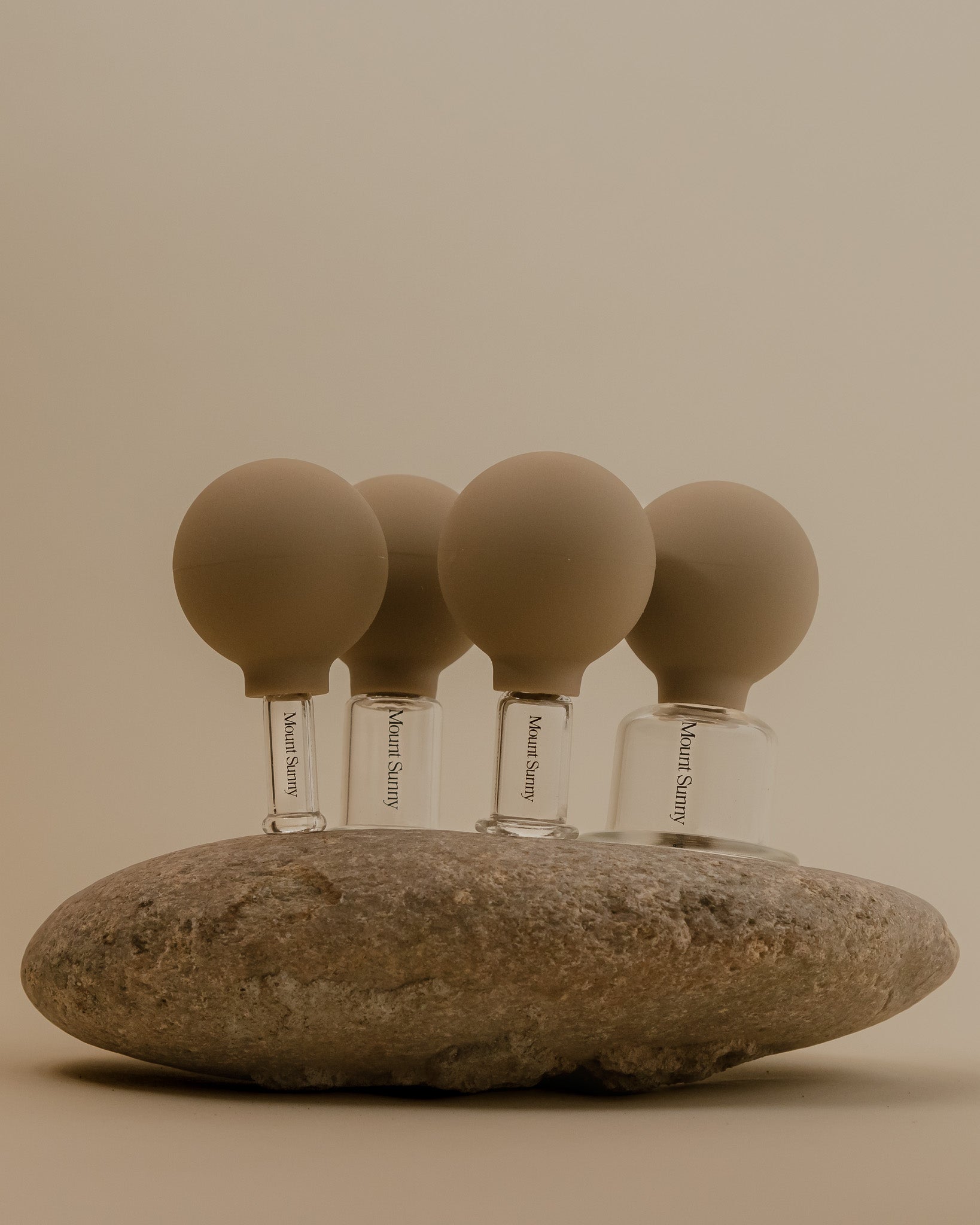 Self care meets wellness with our at-home Facial Cupping Set. This set, featuring four beige suction cups of varying sizes, is your personal tool for a rejuvenating facial massage at home.